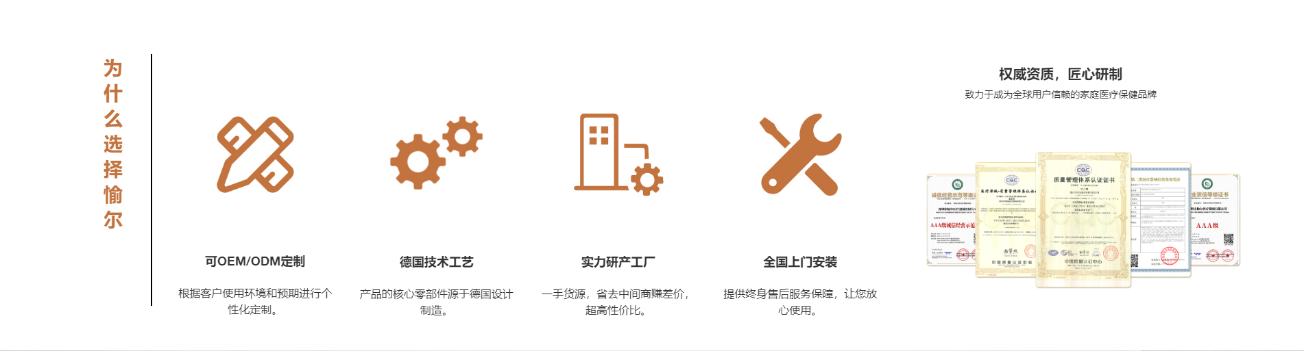 為質(zhì)量負(fù)責(zé)就是為用戶(hù)健康負(fù)責(zé),產(chǎn)品均獲得多項(xiàng)國(guó)際質(zhì)量標(biāo)準(zhǔn)認(rèn)證,符合13個(gè)國(guó)家出口要求。