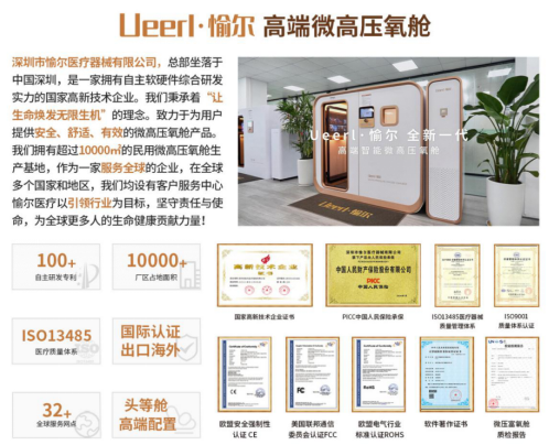 安全始終是愉爾氧艙的核心優(yōu)勢(shì)。艙體采用高強(qiáng)度復(fù)合鋼材料,配備“八重安全防護(hù)+八重空氣過(guò)濾”系統(tǒng),全面保障使用過(guò)程的安全與舒適。作為通過(guò)ISO13485醫(yī)療器械質(zhì)量管理體系認(rèn)證的國(guó)家高新技術(shù)企業(yè),深圳愉爾醫(yī)療的微高壓氧艙已獲得歐盟CE、美國(guó)FCC等國(guó)際認(rèn)證,并成功進(jìn)入歐美市場(chǎng),其制造與安全標(biāo)準(zhǔn)嚴(yán)格遵循國(guó)際主流規(guī)范。